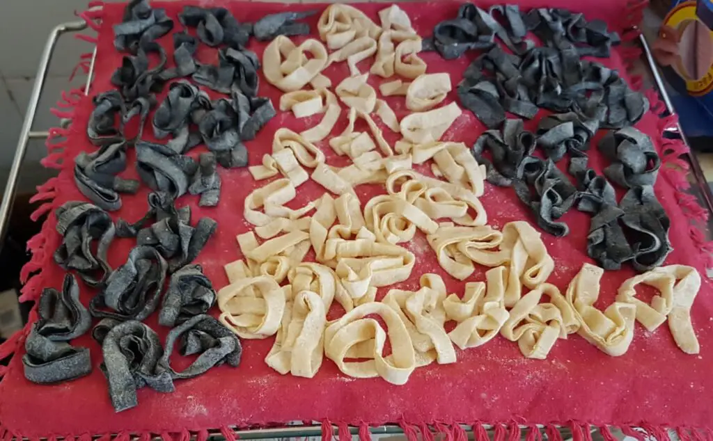 Preparazione delle tagliatelle al nero di seppia: