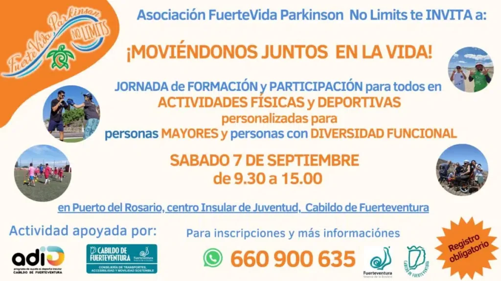 Marque esta cita en su calendario: SÁBADO 7 DE SEPTIEMBRE de 9.30 a 15.00 en Puerto del Rosario, centro Insular de Juventud, Cabildo de Fuerteventura. Una jornada de formación y participación abierta a todos sobre el tema: actividades físico-deportivas para personas mayores y personas con diversidad funcional. La experiencia adquirida por la Asociación a nivel […]